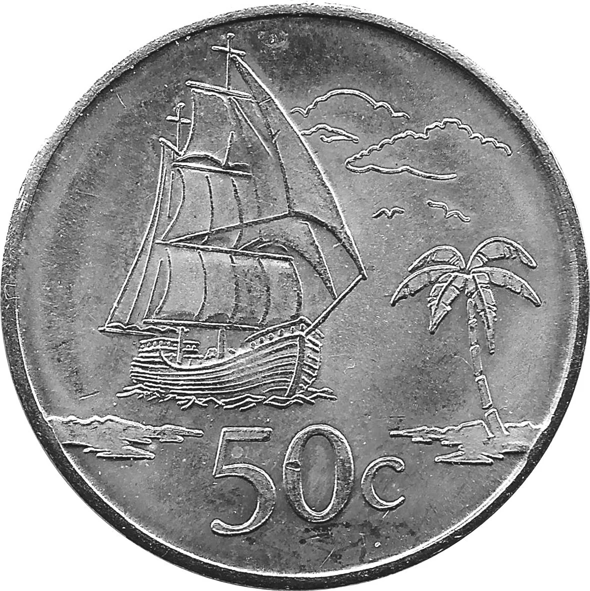 Crowned portrait right within geometric ornamentation and the national flag (Southern Cross stars and a stylized Polynesian canoe). Date.