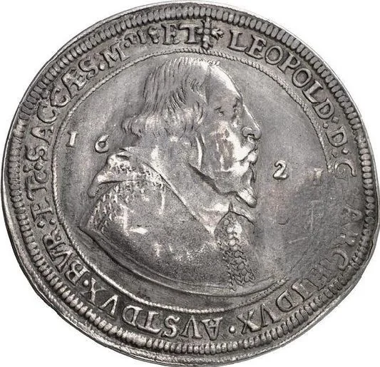Jefimok Rouble on Alsace Thaler (Dav# 3346). Host: 1621-1625. Counterstamps: date and speared horseman.
