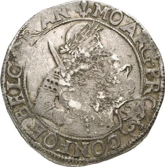 Jefimok Rouble counterstamp on an Overijssel Rijksdaalder (Dav# 4832). Host coin: 1606-1629. Counterstamp: horseman with spear and date.