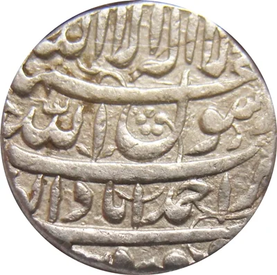 Kalima shahada. Below: month, regnal year, and mint Ahmadabad.