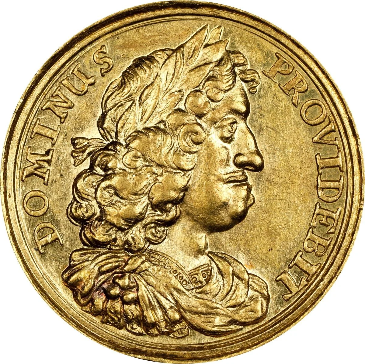 Bust of Frederik III with laurel wreath, facing right, encircled by inscription. Solid rim ring.