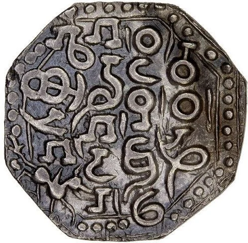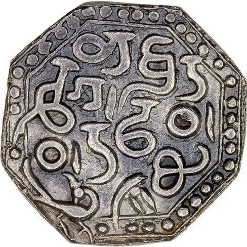 Assamese four-line legend. Bird preening at lower left beside a plant stalk.
