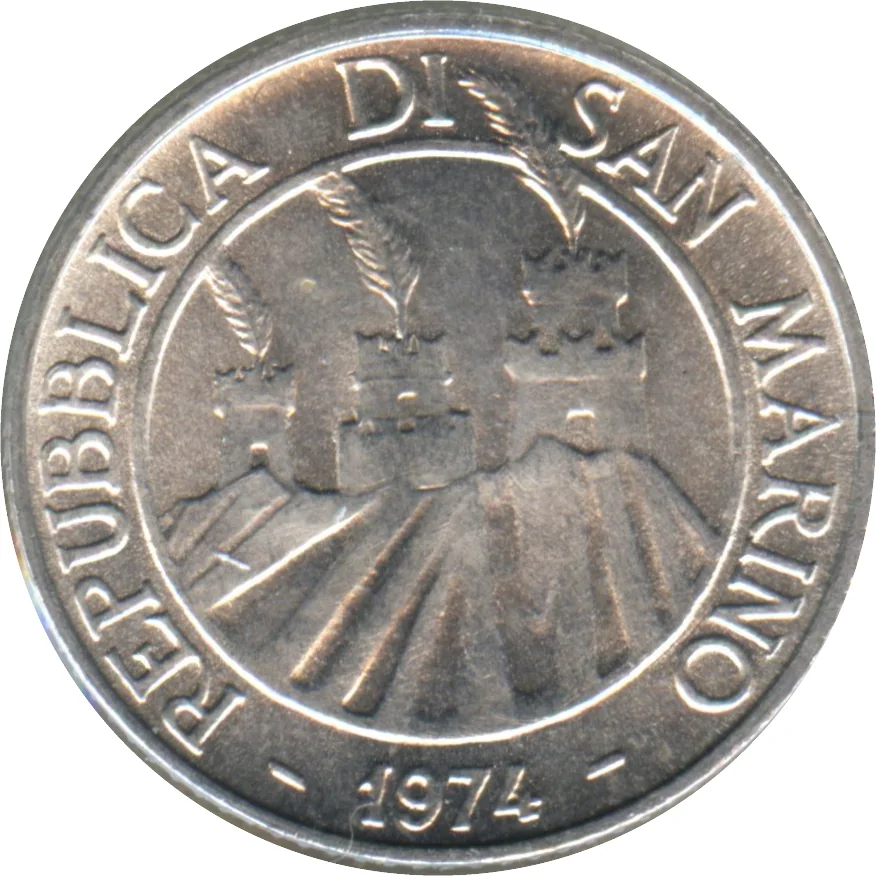 In 1974, San Marino’s currency situation was fundamentally defined by its close economic and monetary integration with Italy, governed by a series of bilateral treaties. The most important of these was the Convention of 1939, which established the Italian Lira as legal tender within the republic and granted San Marino limited rights to mint its own coinage. These Sammarinese coins, denominated in lire, were legally equivalent to their Italian counterparts and circulated interchangeably, but they were produced in strictly limited quantities, primarily for commemorative and collector purposes rather than for driving the domestic economy. The country had no central bank and did not issue paper currency, relying entirely on Italy for its circulating medium.