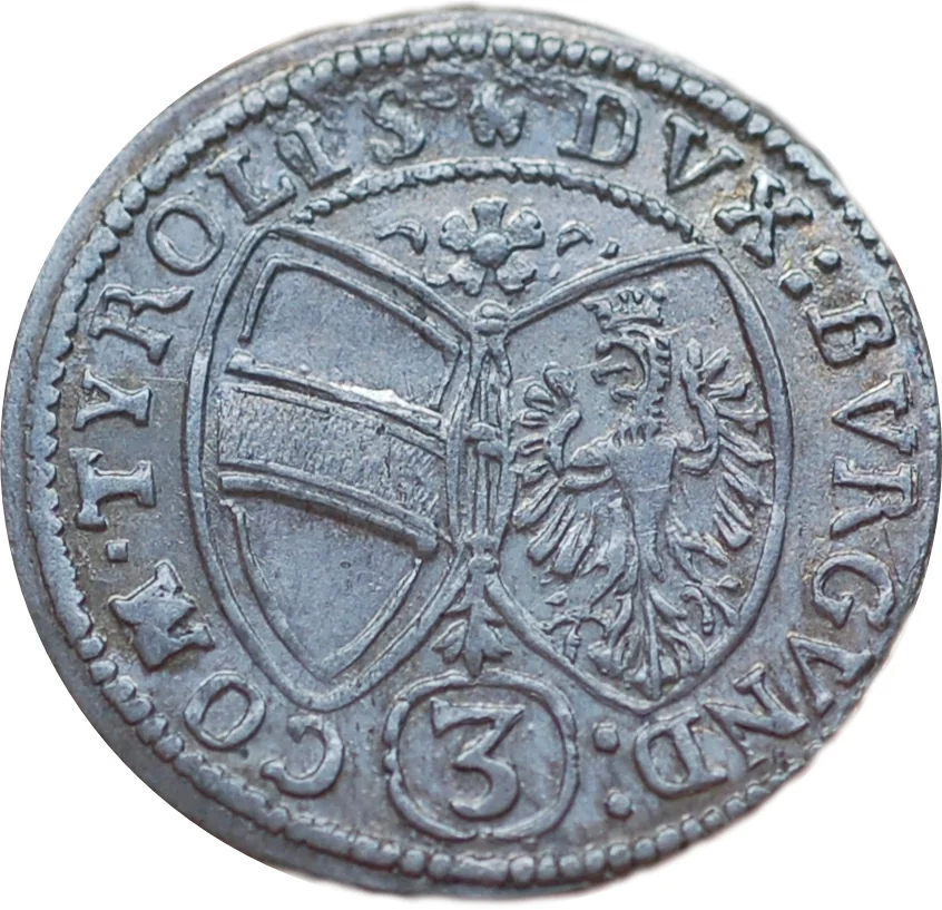 Two shields within a partial braided circle: left for Further Austria, right for Tyrol. Value below in a round frame divides the legend.