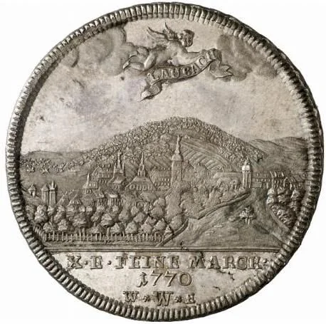 Laubach, with a cherub flying above, banner in hand.
