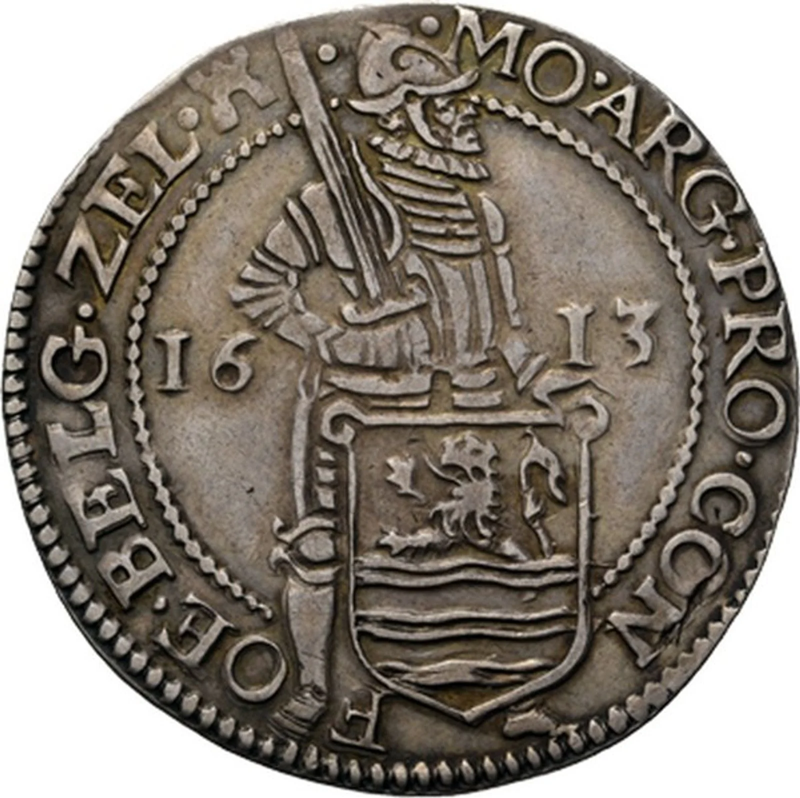 Armoured knight with sword, Zeeland coat of arms, flanking date.