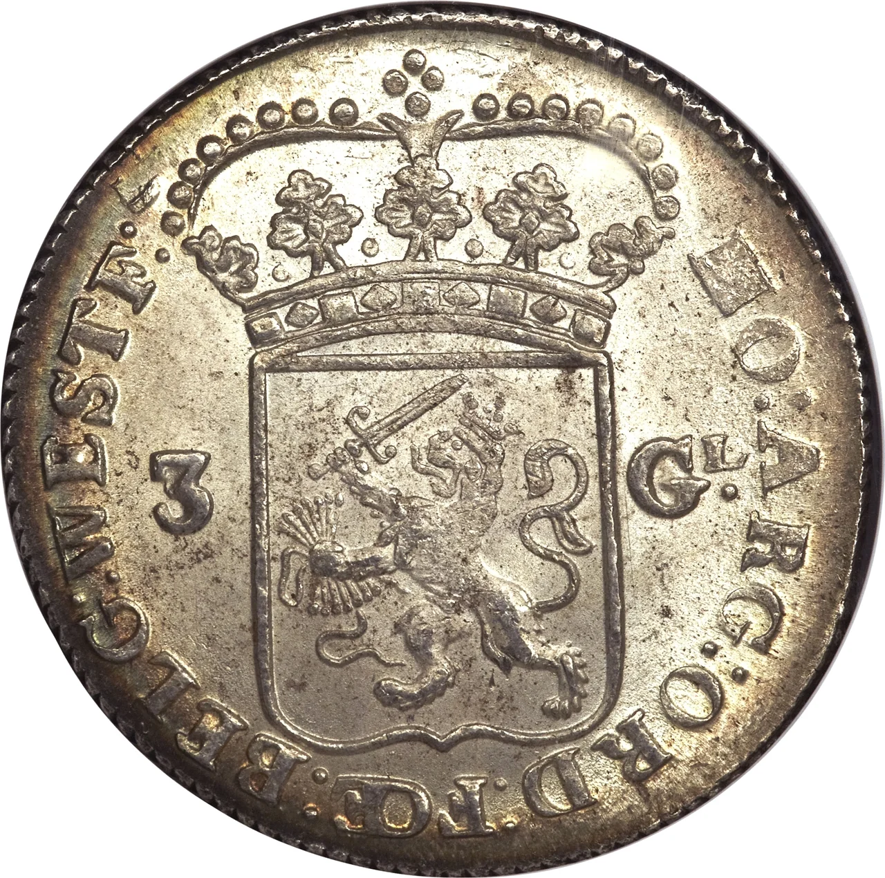 Dutch Republic arms flanking value.