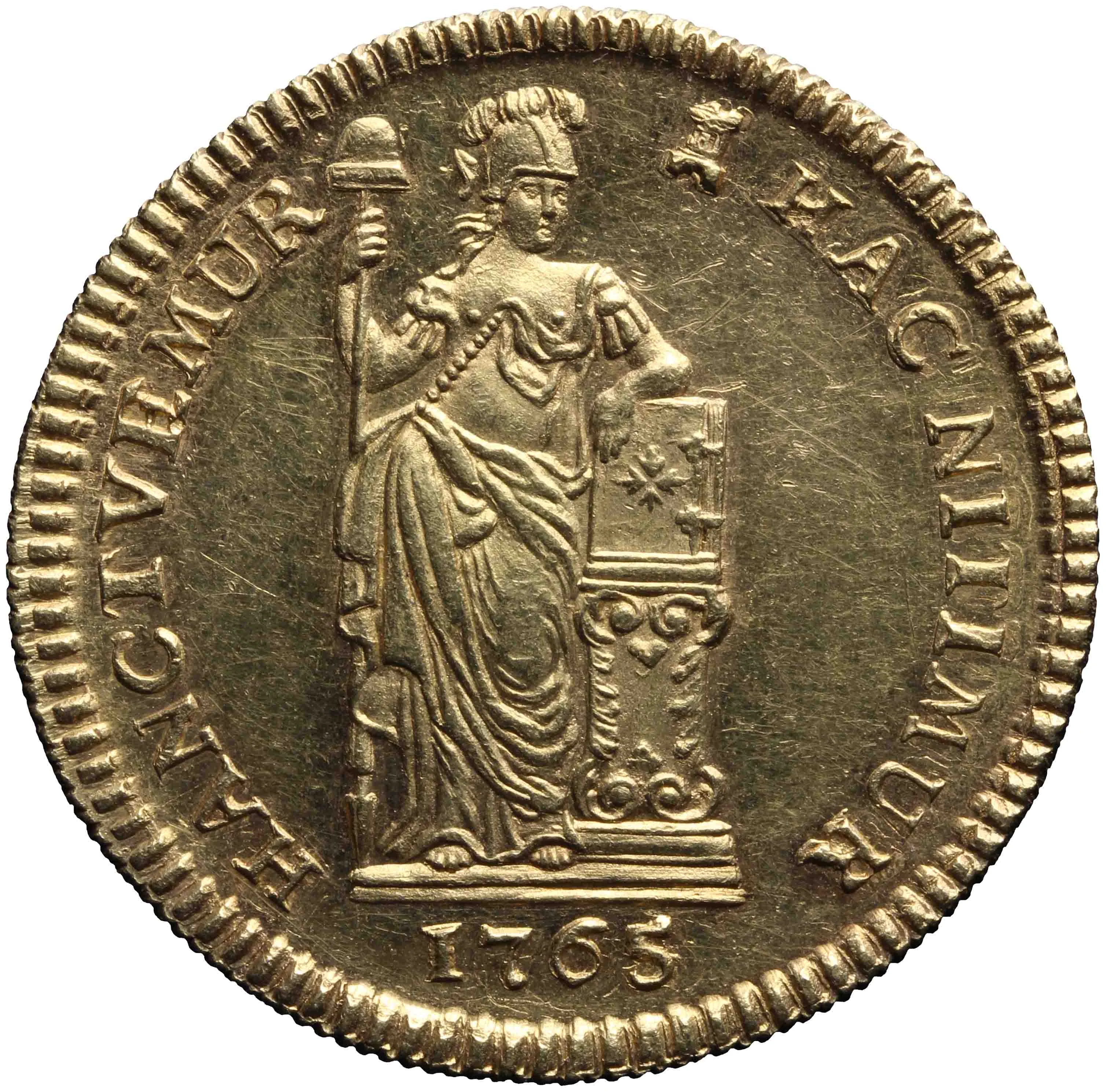 Female figure leaning on a Bible on a column, holding a spear with a Liberty cap. Mint mark precedes legend.