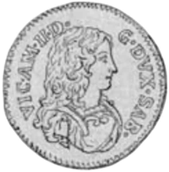 Shield with Savoy arms divides date, encircled by Annunziata collar.