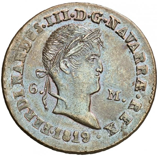 In 1819, the Kingdom of Navarre, a historic realm straddling the Pyrenees, was in a state of profound monetary disarray, a direct consequence of the Peninsular War (1808-1814) and the ensuing political turmoil. The conflict had devastated the local economy, disrupted trade, and led to a severe shortage of official coinage from the central Spanish mint. This vacuum was filled by a chaotic mix of obsolete coins from earlier reigns, French occupation currency, and a flood of debased and counterfeit coins, creating a climate of confusion and distrust in everyday transactions. The problem was exacerbated by Navarre's traditional