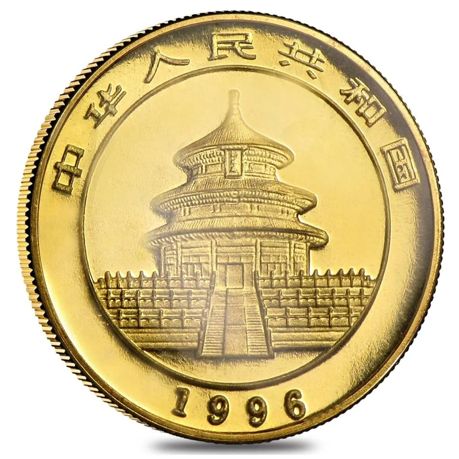 The obverse depicts the Hall of Prayers for Good Harvests and the mintage year.