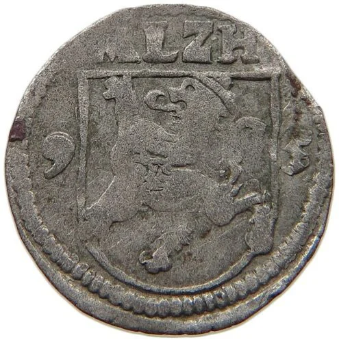 Hessian lion left in Spanish shield divides date, MLZH above.