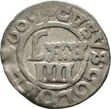 Roman numeral denomination within beaded circle.