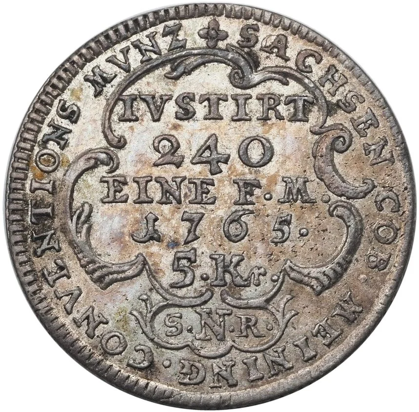 Description: Silver mark fraction (1/240), date, and 5 kreuzer value in four lines within foliage. Mint official "S.R." flanking mint letter "N" in cartouche below.