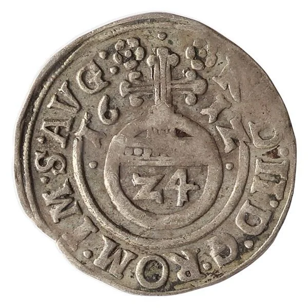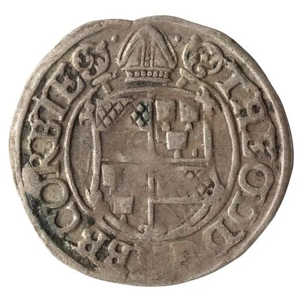 Shield with four quarterings on crossed croziers, topped by a mitre.