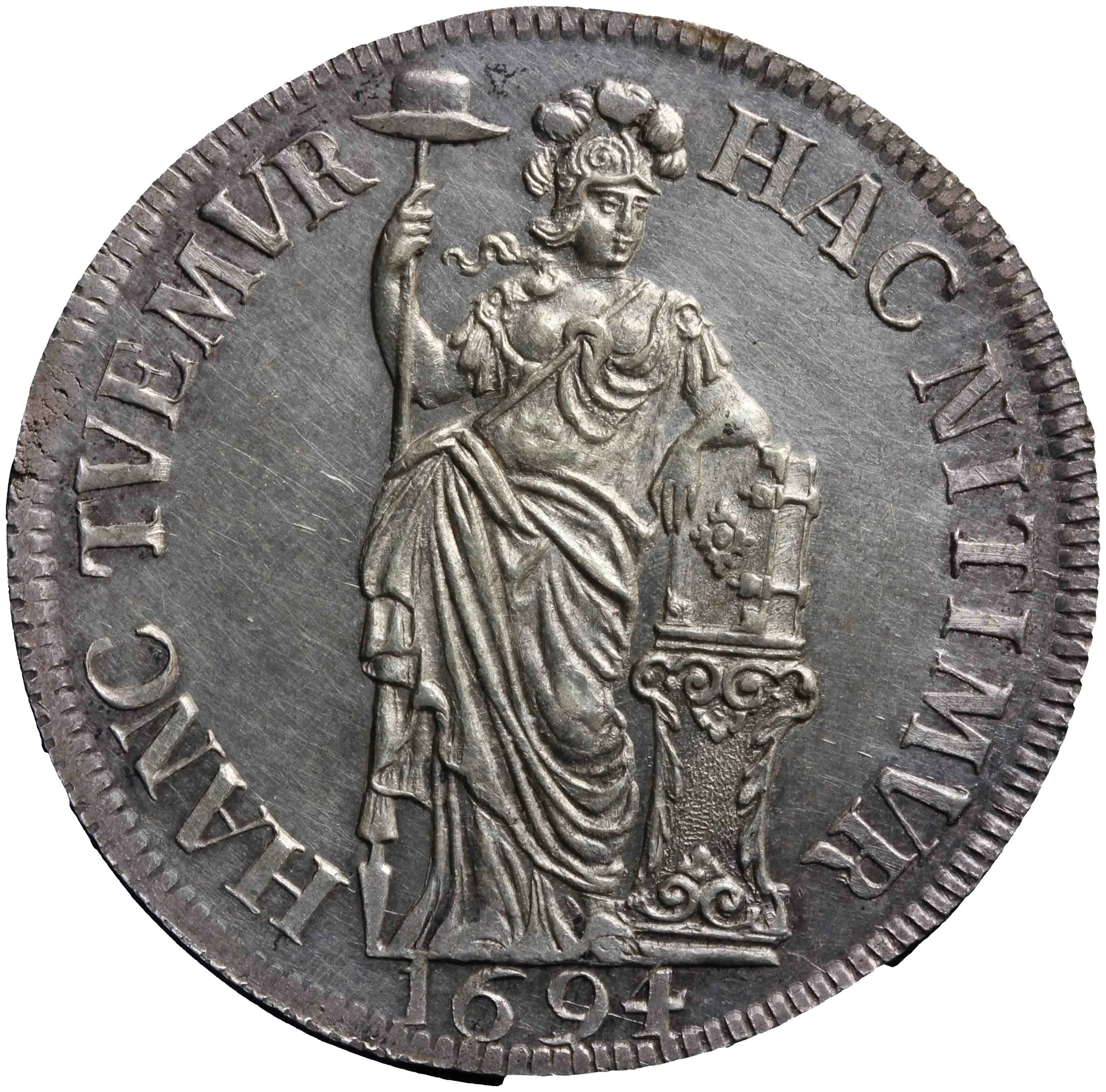 Female figure leaning on a Bible, holding a spear with a Liberty cap.