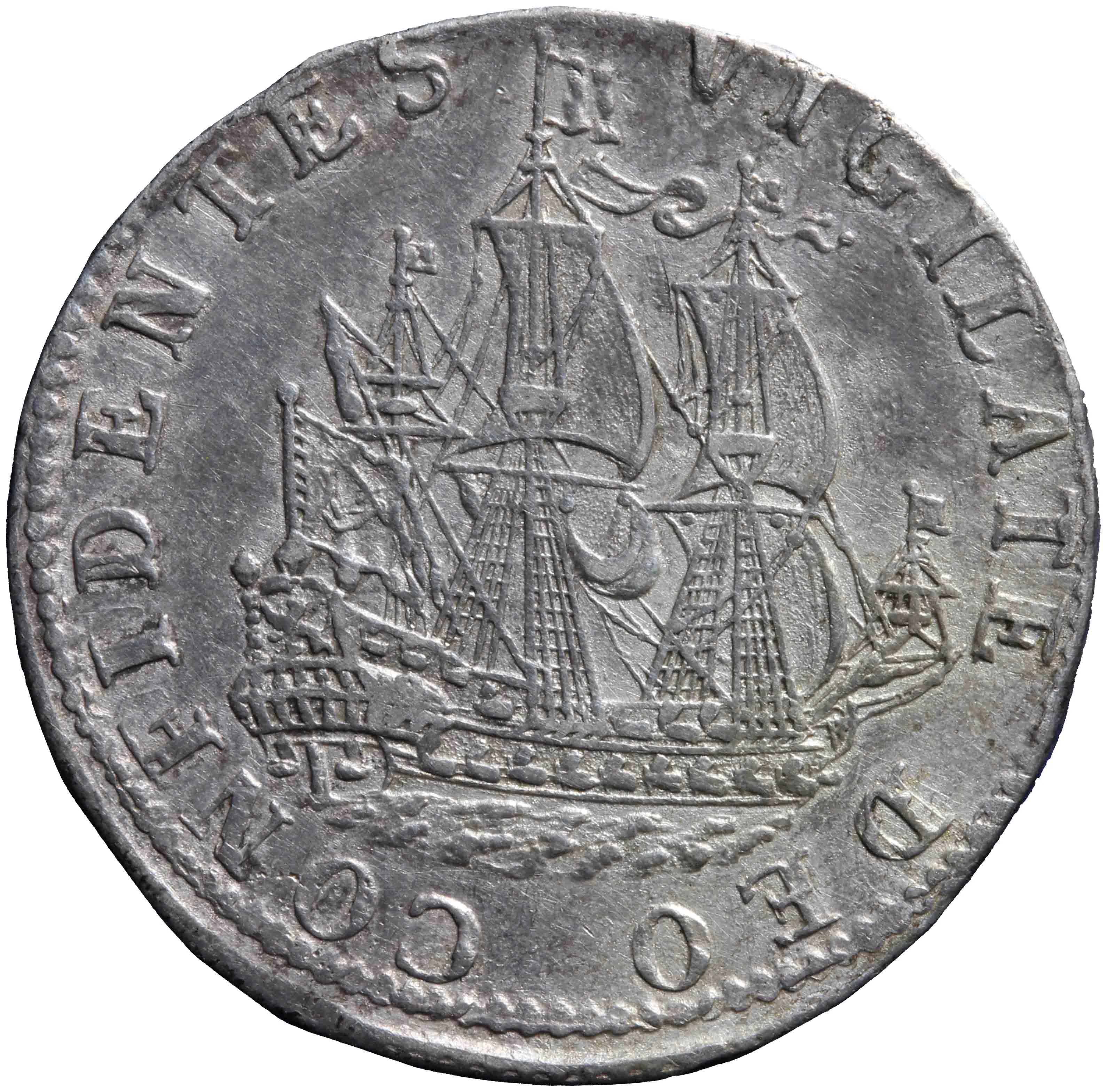 Crowned arms split value. Date below crown.