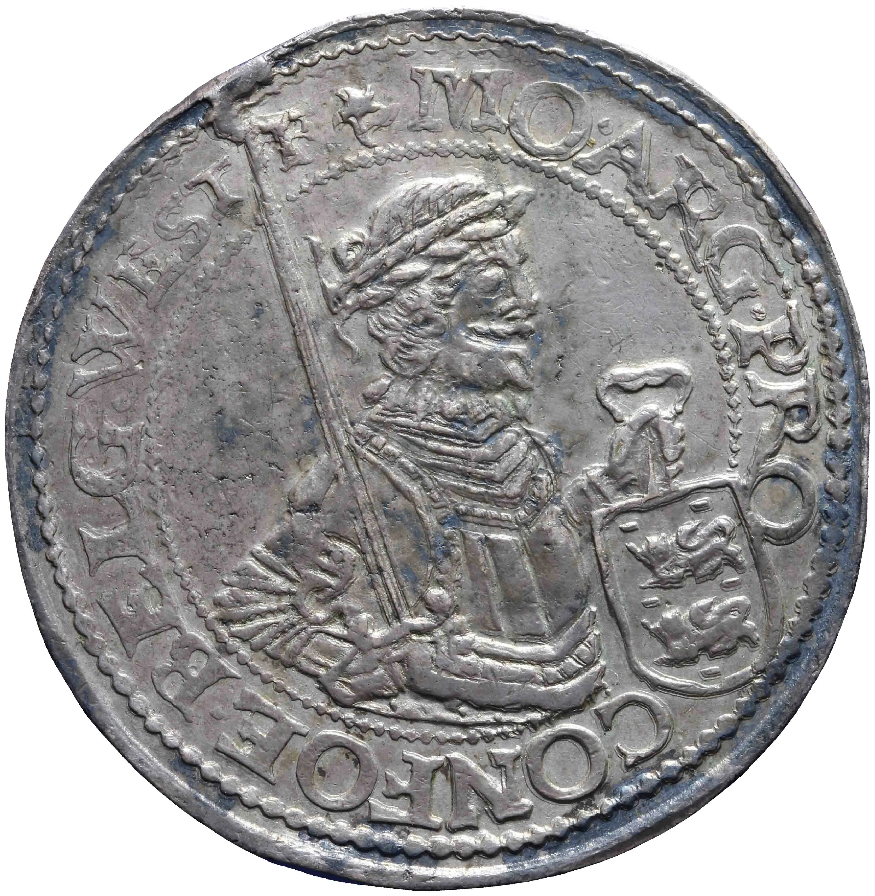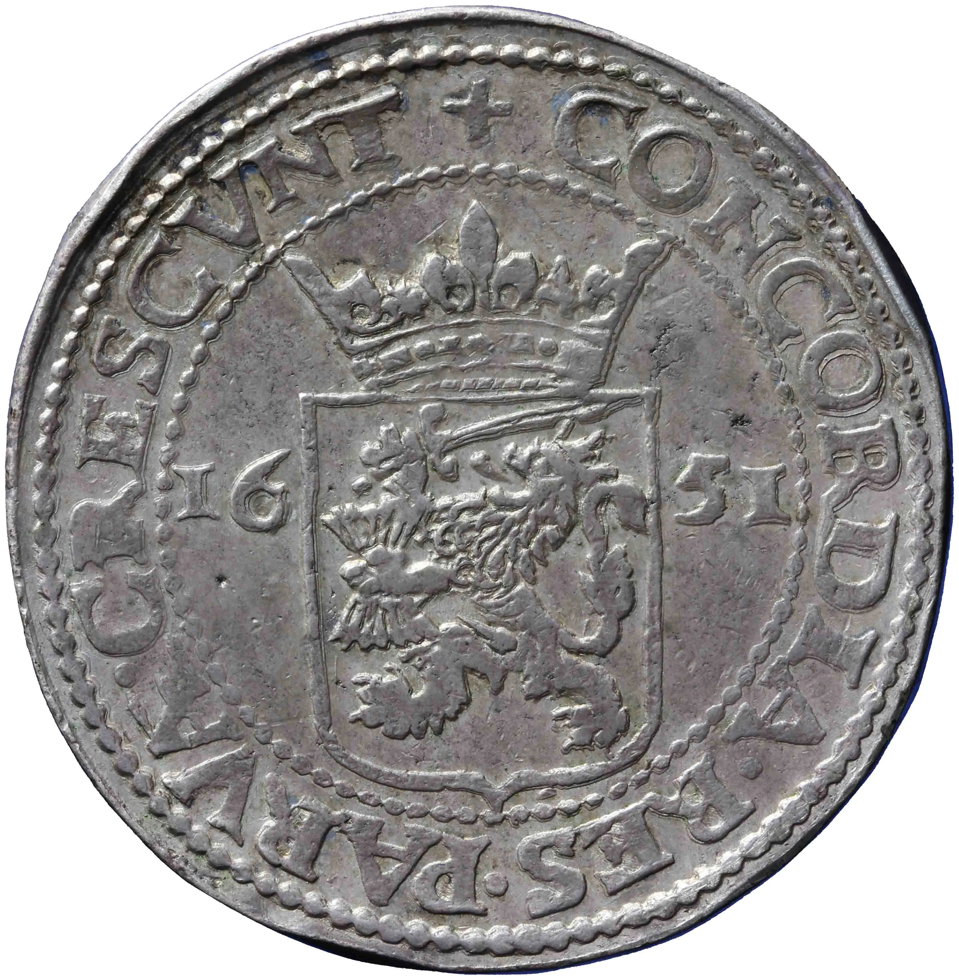 A right-facing knight, sword in right hand, shield with West-Friesland's coat of arms in left.