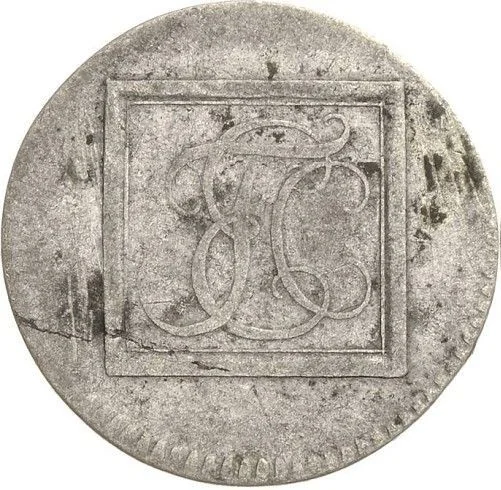 Crowned monogram in a square.