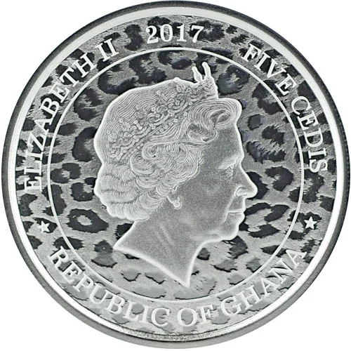 Elizabeth II bust right, leopard skin background.