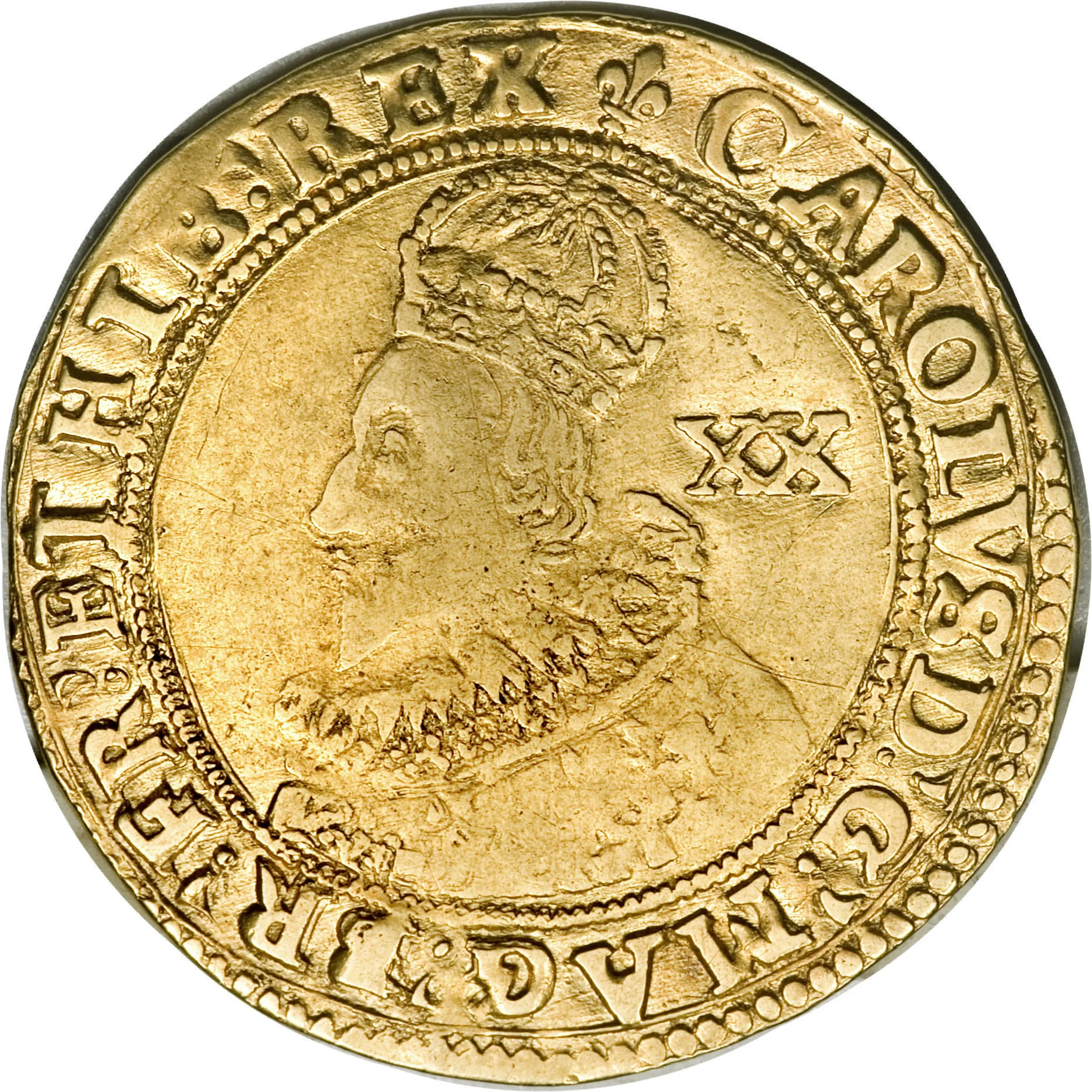 King Charles I crowned bust facing left.