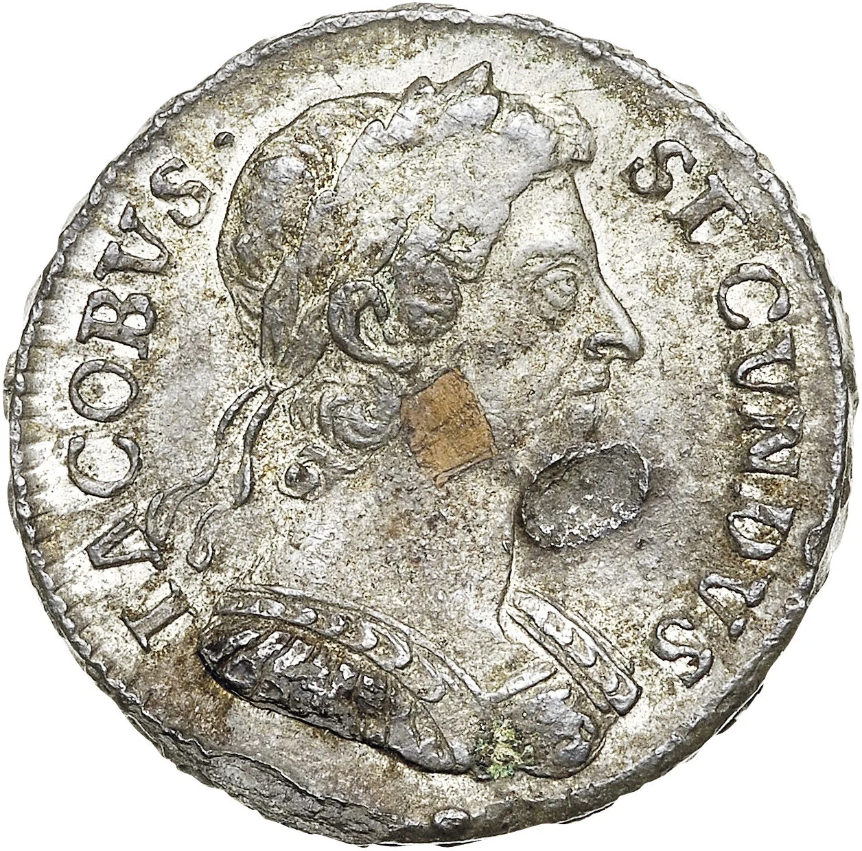 Laureate, cuirassed bust of James II right, legend surrounding.