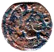 Long cross with legend, annulet in second and third angles, three bezants in first and fourth. Legend within beaded circle.
