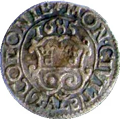 City arms in a shield, date above, value below.