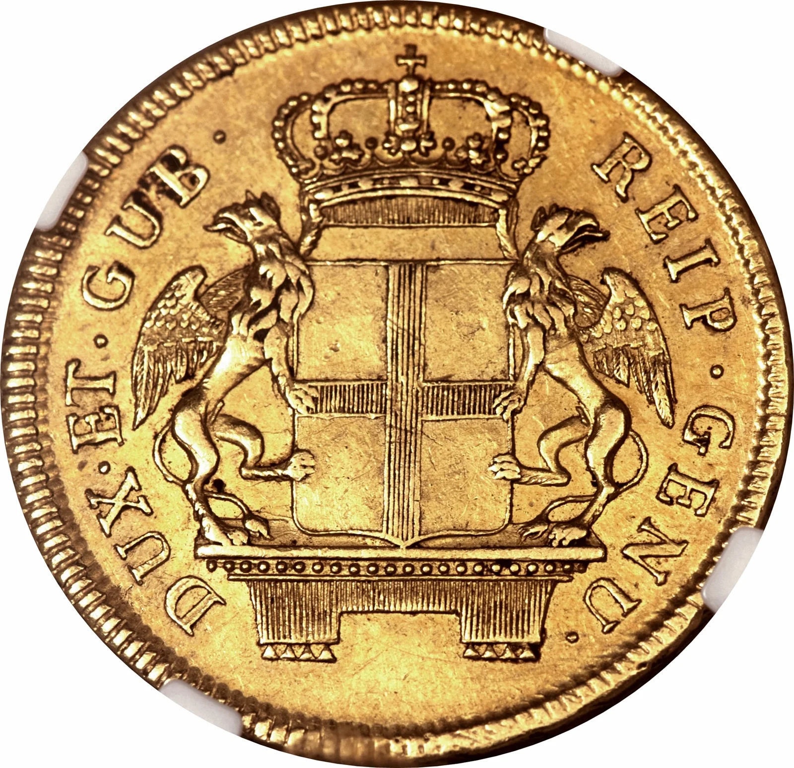 Madonna with scepter and child above clouds. Date and value in legends at right and below.
