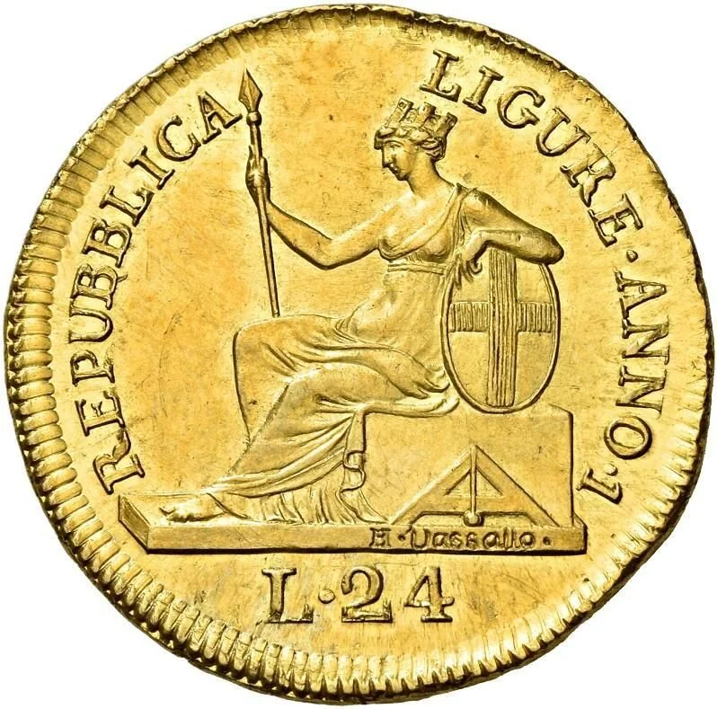 The Ligurian Republic, established in June 1797 following Napoleon's imposition of a French-aligned government on the former Republic of Genoa, inherited a complex and precarious monetary situation. The traditional Genoese currency system, historically anchored by the genovino and later the lira, was in a state of disarray due to years of economic strain, wartime deficits, and the inflationary practice of issuing paper money (biglietti di cartulario). By the republic's founding, public debt was enormous, confidence in paper currency was low, and a chaotic mix of old Genoese coins, foreign specie (like Spanish silver pesos), and depreciating paper circulated.