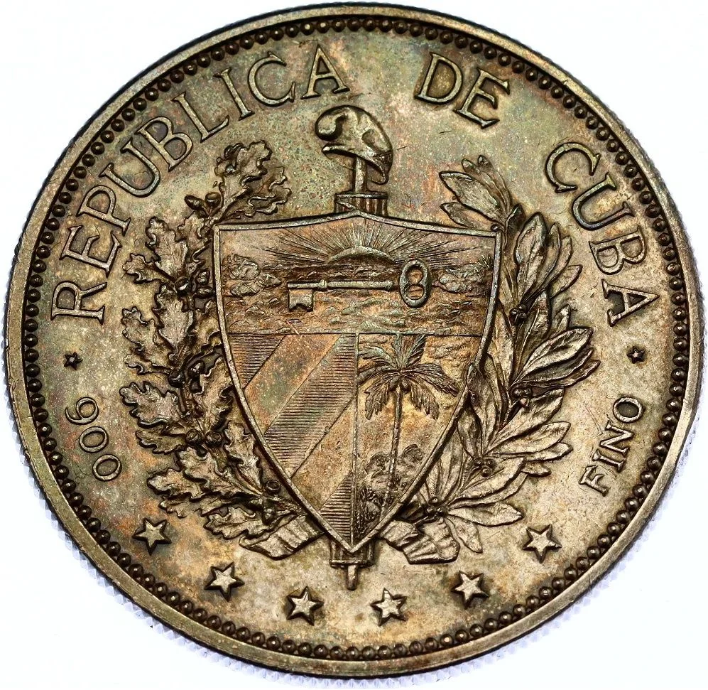 Cuban coat of arms with country name above and fineness notations on the sides.