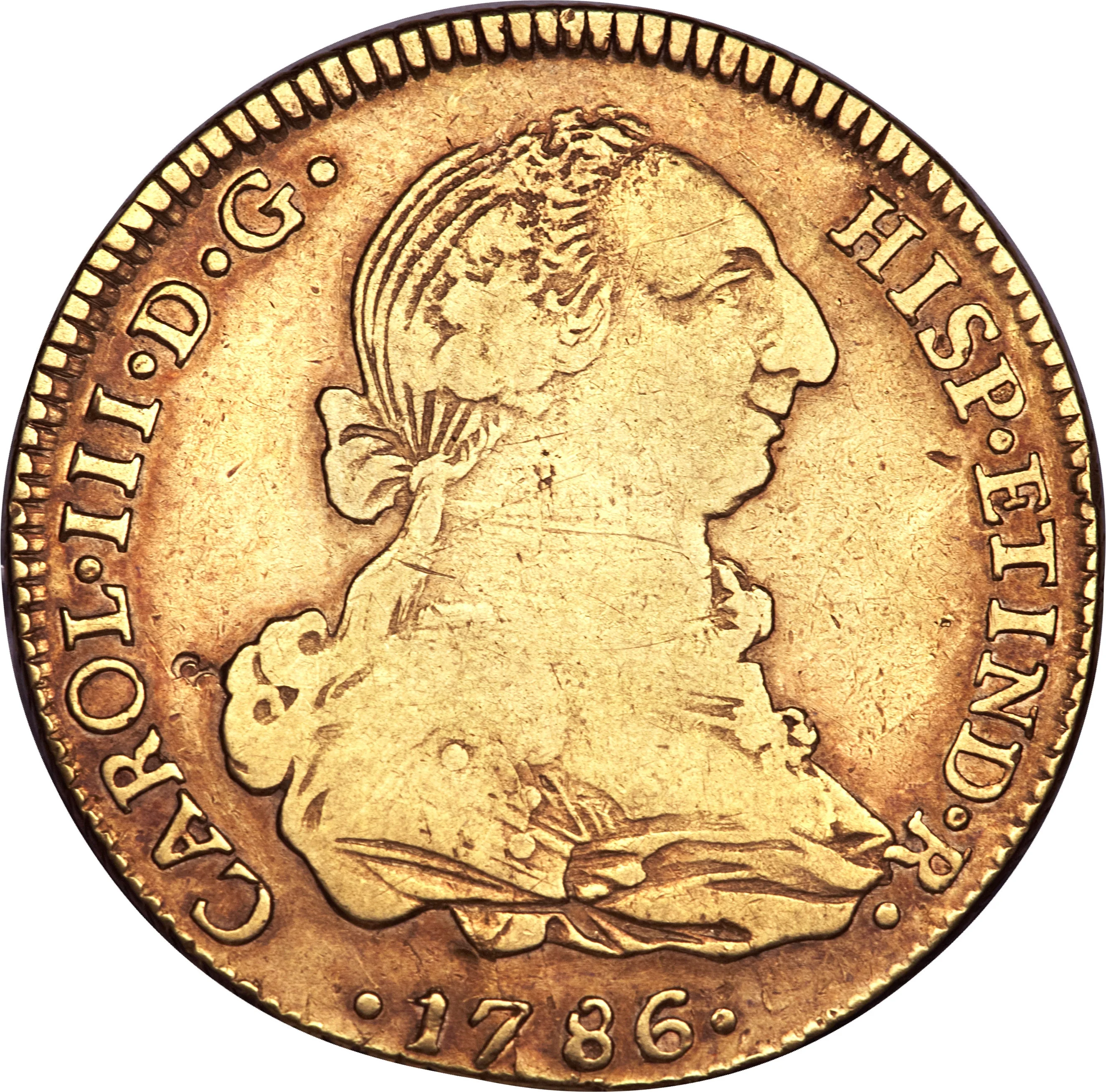 Carlos III bust right above date.
