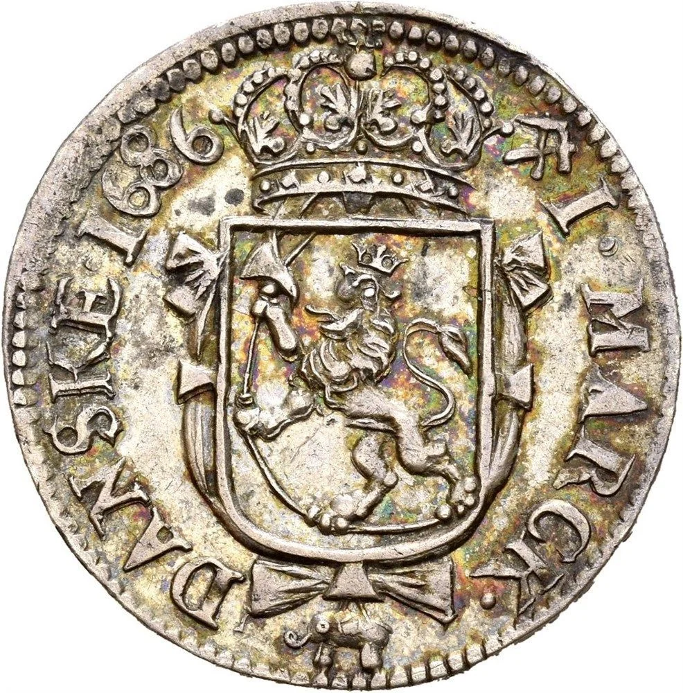 In 1686, Norway was part of the dual monarchy of Denmark-Norway, and its currency system was complex and troubled. The primary circulating coin was the skilling, minted in silver, but the system was officially based on the riksdaler (rix-dollar), a large silver coin used for major transactions and accounting. However, a severe shortage of physical coinage, especially small change for everyday trade, plagued the economy. This scarcity was exacerbated by the export of full-weight Norwegian silver coins to foreign markets where their metal value was higher, leaving the domestic economy starved for reliable currency.