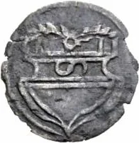 Renaissance shield with a Damascus sign on the central bar and two branches at the top.