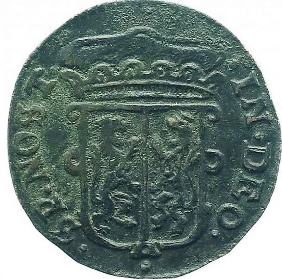 Crowned Gelderland shield dividing inscription.
