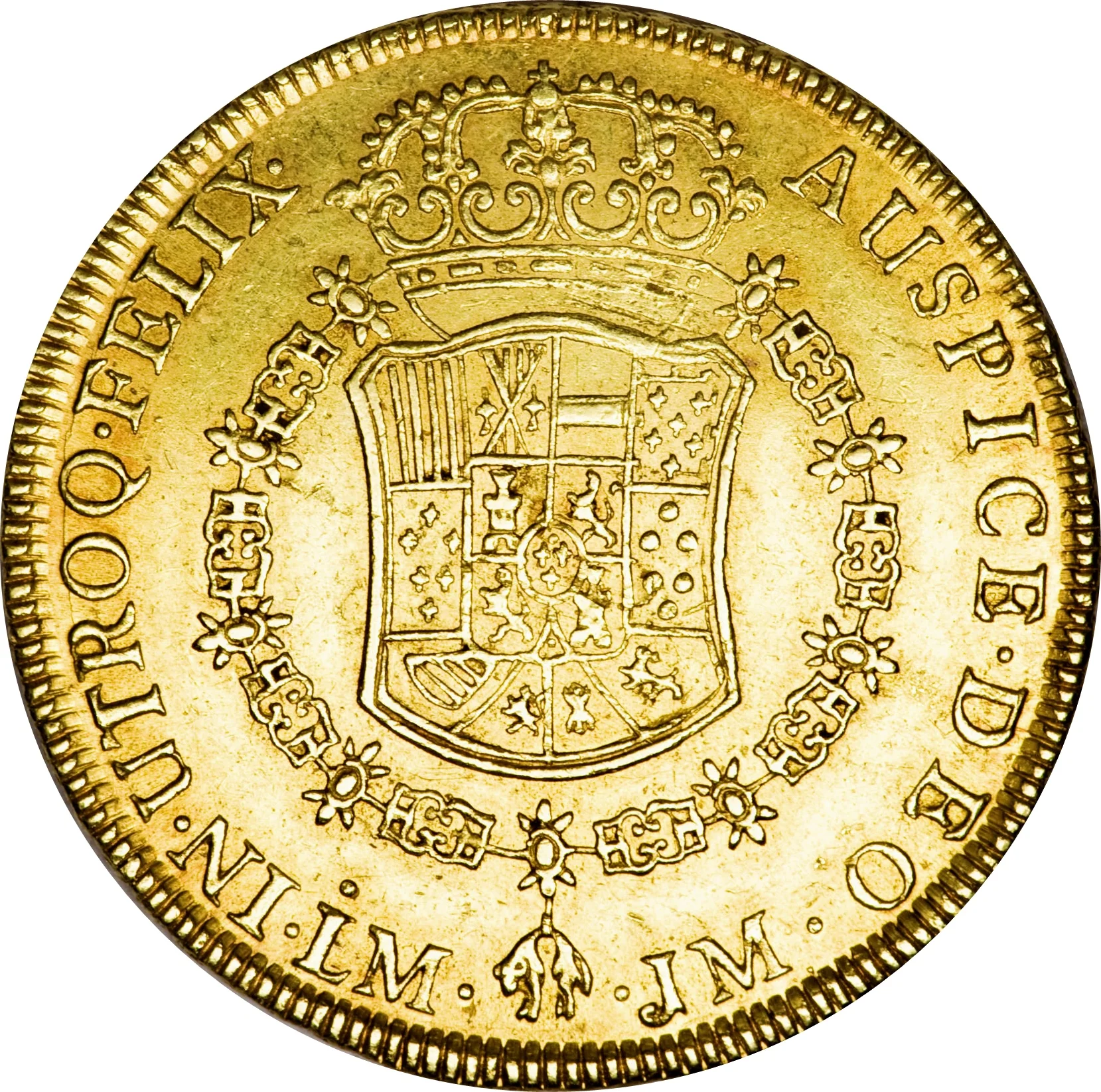escudos, with the famous "pieces of eight" (8-reales coins) minted at the primary colonial mint, the