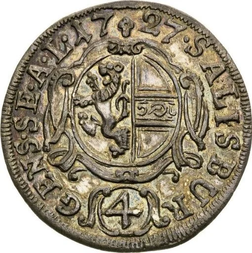 Salzburg, Austria. Oval shield with cross-divided date above, circled value below, surrounded by legend.