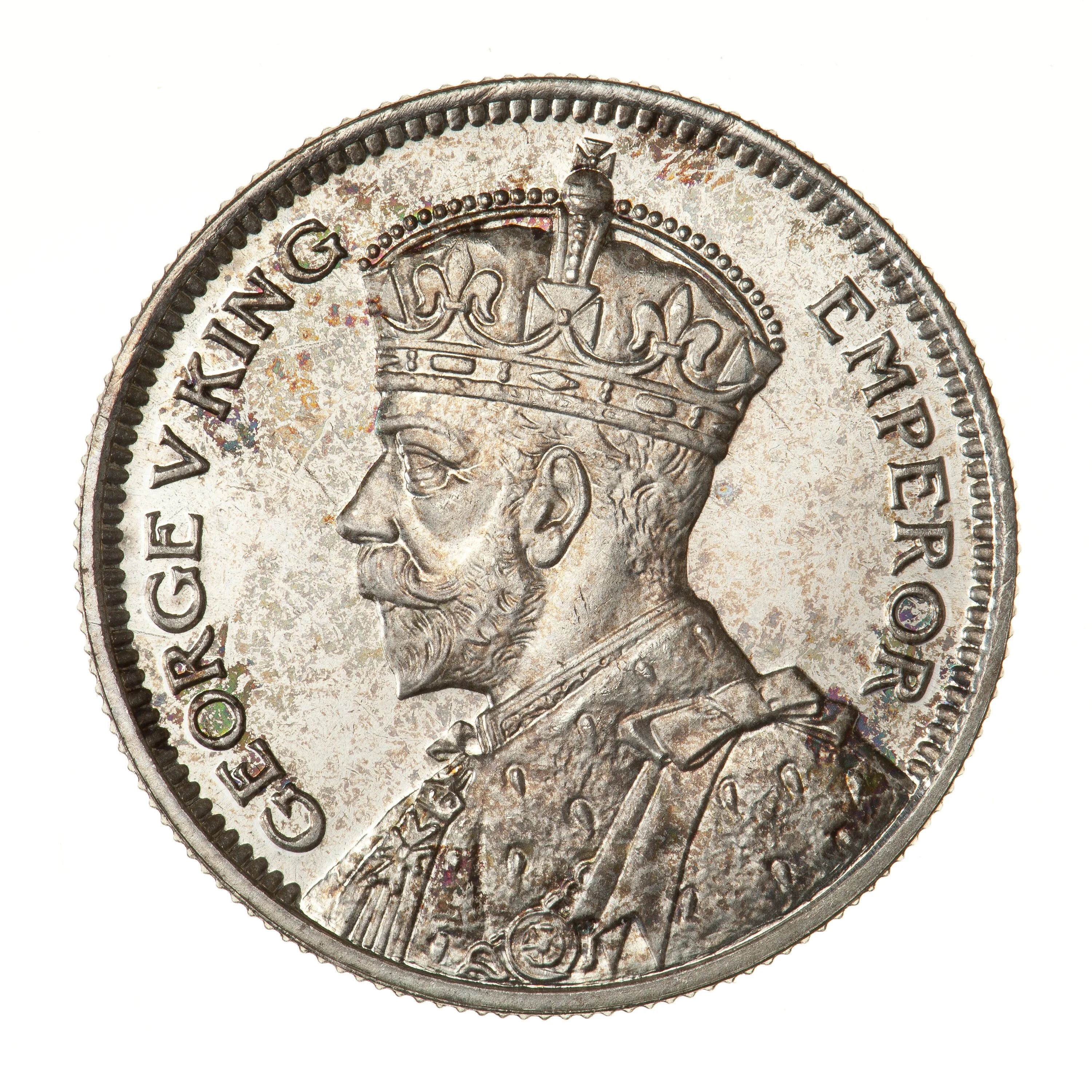 King George V left-facing crowned bust in coronation robes, wearing the Garter collar and Royal Victorian Order star.