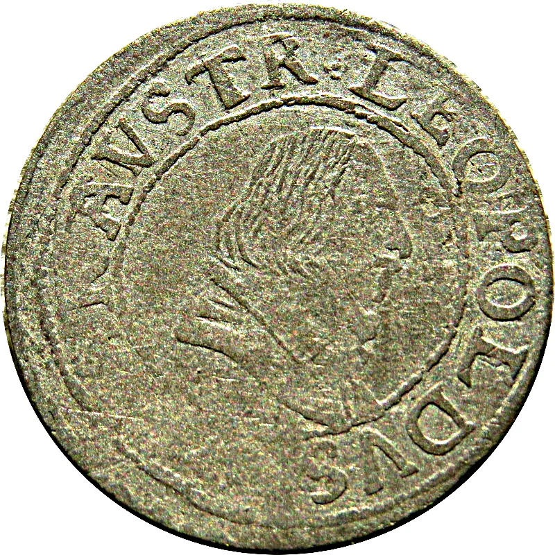 Bare-headed portrait of Leopold V of Habsburg, Governor of Tyrol, within a plain circle. Circumferential legend.