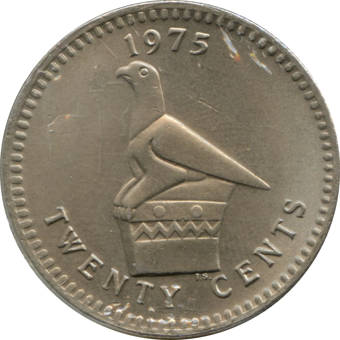 Great Zimbabwe Bird: date above, denomination below.