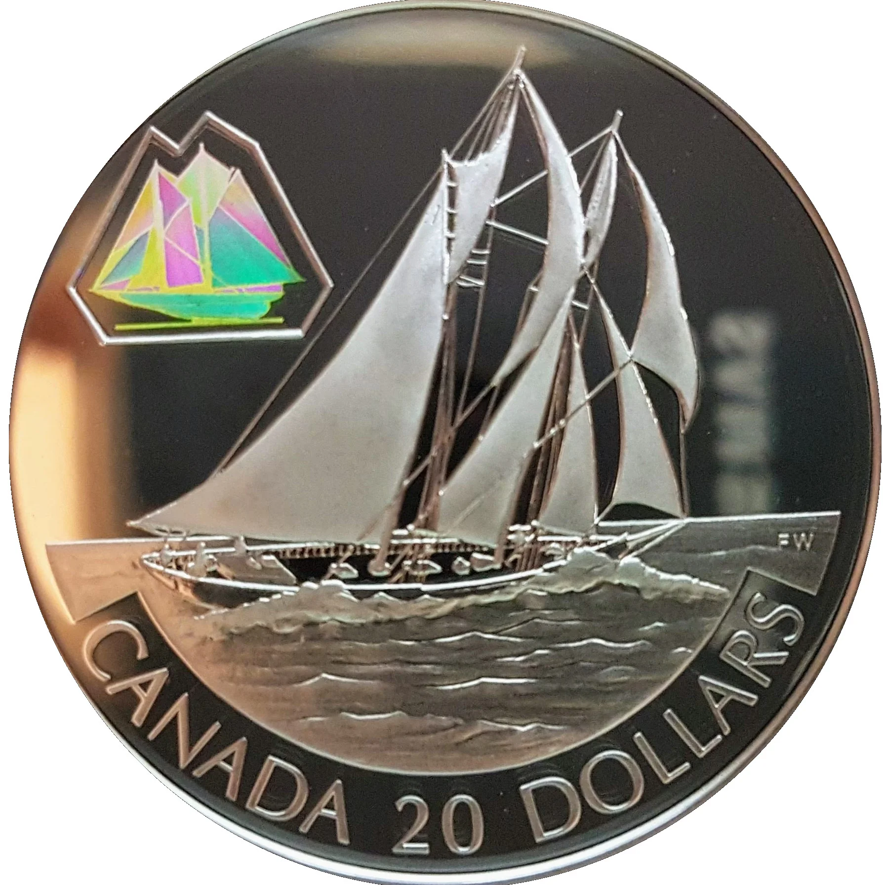 Bluenose sailing, with a hologram inset.