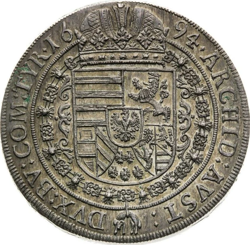Crowned arms with central Tyrol shield; date flanking the crown.