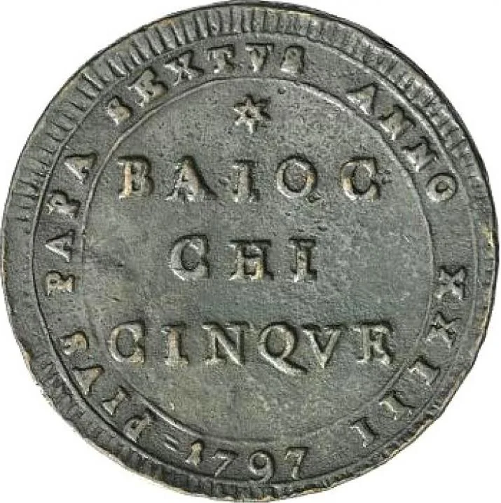 By 1797, the currency situation in the Papal States was one of profound crisis and confusion, directly resulting from the military and political upheavals of the French Revolutionary Wars. In February 1797, the Treaty of Tolentino imposed a massive indemnity of 30 million lire on Pope Pius VI, draining the papal treasury of specie (gold and silver coin). To meet these crushing obligations, the government was forced to authorize the melting of church plate and precious objects, further destabilizing the monetary supply. This financial hemorrhage occurred alongside the circulation of occupation currencies introduced by French armies, which disrupted the established system.