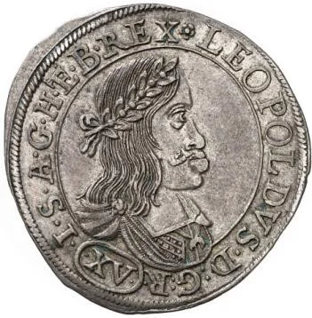 Portrait of Leopold I of Habsburg facing right, bust dividing circle. Date in roman numerals within circle divides legend. Legend (from 1h): LEOPOLDUS DEI GRATIA ROMANORUM IMPERATOR SEMPER AUGUSTUS, GERMANIAE, HUNGARIAE, BOHEMIAEQUE REX.