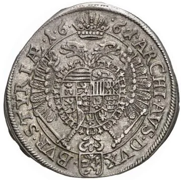 Imperial double-headed eagle, crown dividing date. Styria shield (fire-spitting panther) divides legend: "Archidux Austriae Dux Burgundiae Styriae."