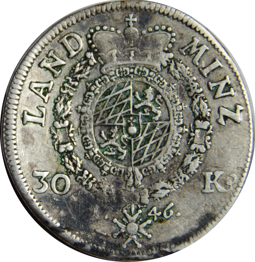 Crowned arms encircled by the Golden Fleece, flanking the date and denomination.