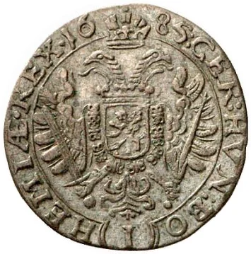 Imperial eagle with sword and sceptre, crowned, bearing Bohemia's arms. The crown interrupts the top legend; the mint mark is below.