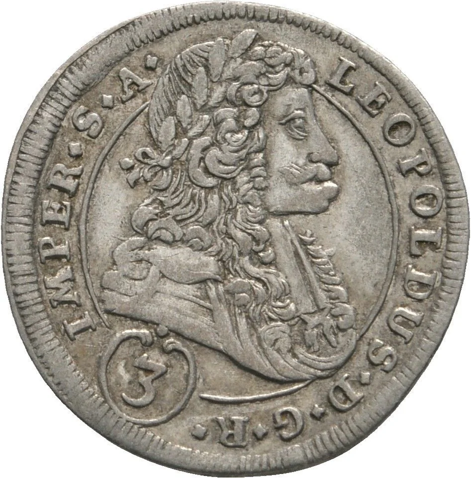 Portrait right of Leopold I in wig, legend divided across top. Value in frame at lower left.