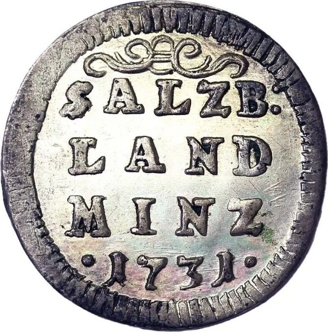 Archbishop's hat above two decorated shields: Salzburg on left, bishop's personal arms on right. Value in frame below.