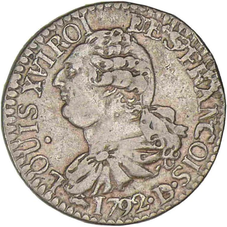 Bust of Louis XVI left, bare-headed with tied hair, wearing a cloak fastened by a shoulder fibula. Vintage and different workshop in exergue. Legend begins at 7 o'clock.